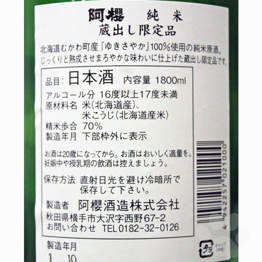 阿櫻 蔵出し限定品 純米酒 ゆきさやか
